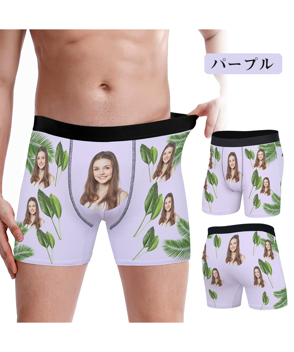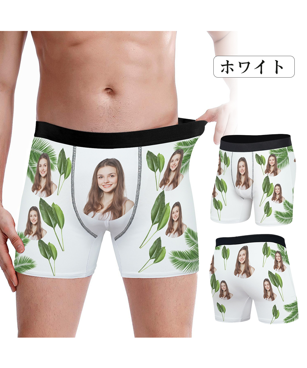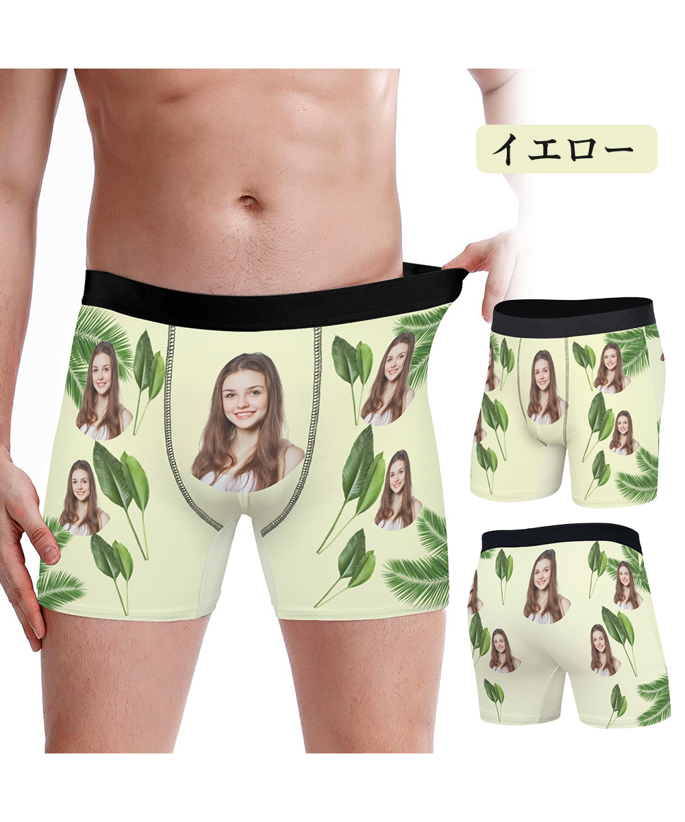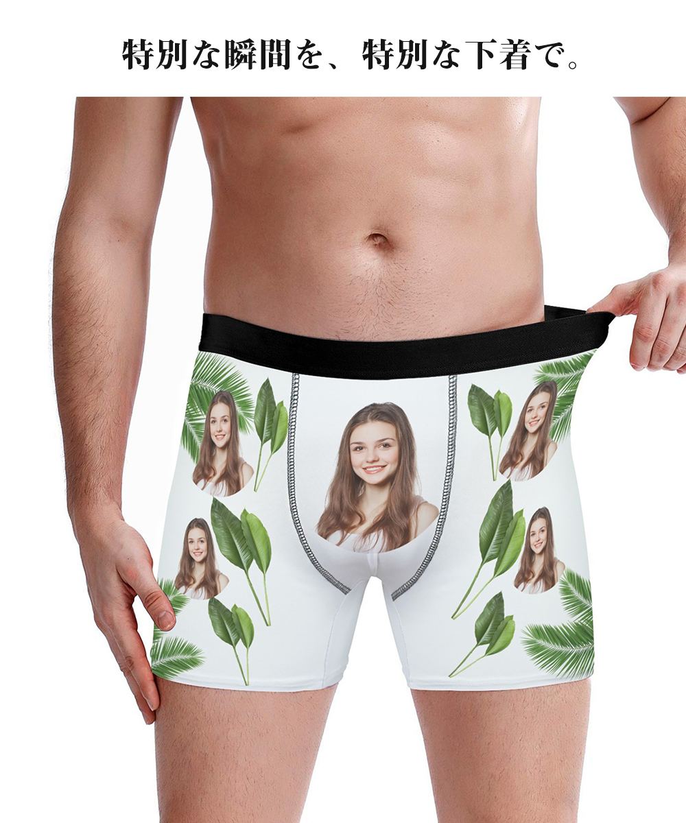 【写真入りボクサーパンツ】メンズ オーダーメイド下着 カスタムプリント 緑葉デザイン 5色展開 名入れ プレゼント ギフト 誕生日 サプライズ S〜3XL対応