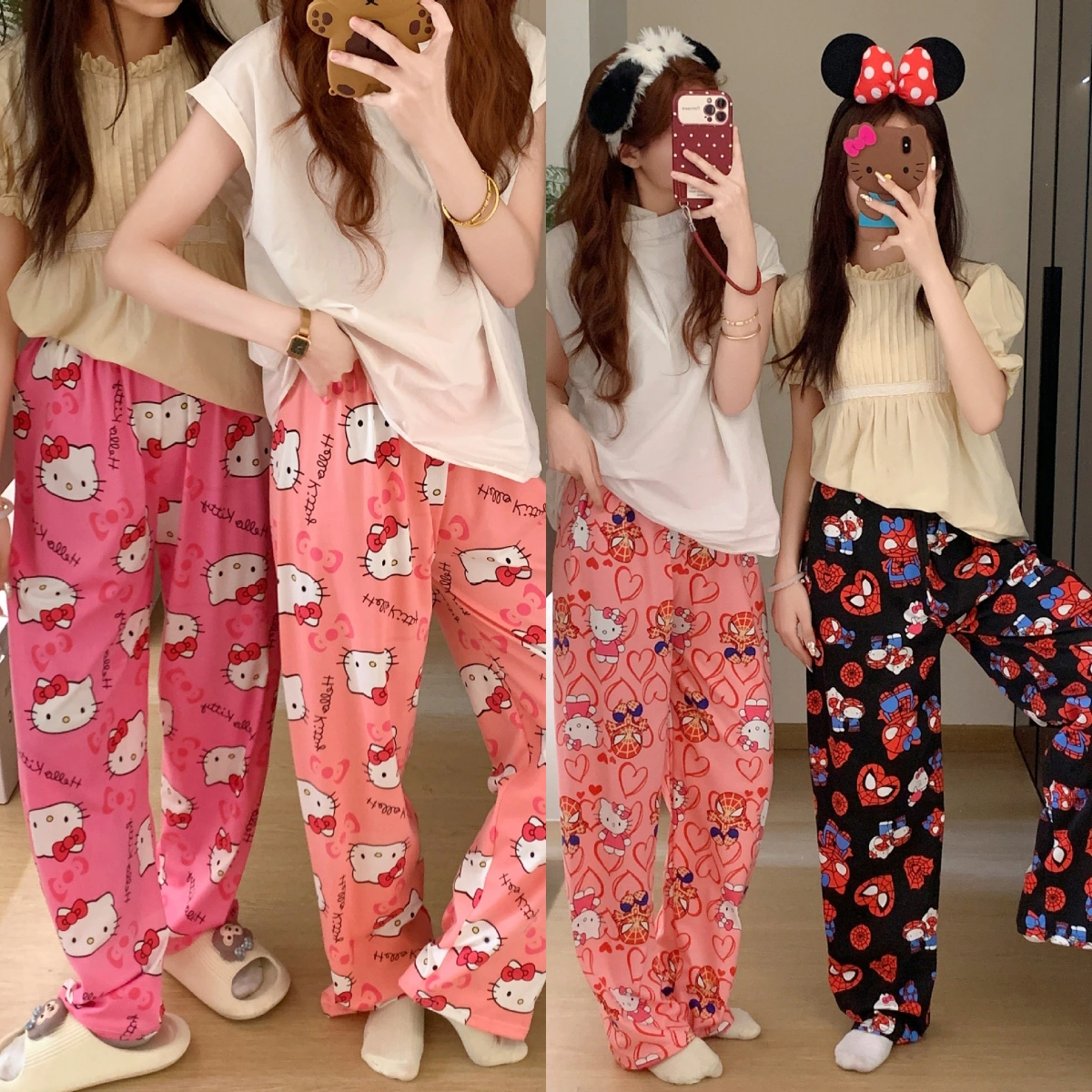 サンリオ【春夏の新作】キティちゃん パジャマ 修学旅行 部屋着 スパイダーマン キティズボン ルームウェア 肌触り ズボン/ワイドパンツ/カジュアル 外着可能 友情プレゼント